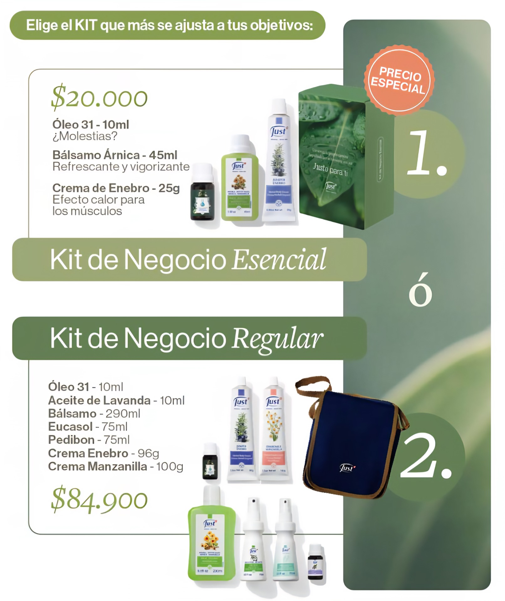 Si siempre quisiste ingresar a Just pero no contabas con el dinero para invertir en tu kit de inicio, te tenemos una super noticia. Con el nuevo Kit de Negocio Esencial, podrás ingresar invirtiendo solo $20.000... sí, ¡leíste bien! ¡Solo $20.000!